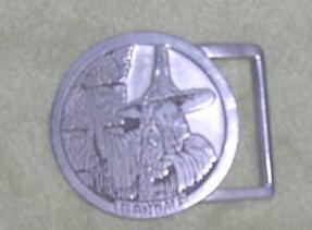 And the last buckle is a brass Merlin made by The Beardsley Buckle Co. of Bloomington, Indiana.